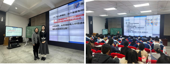 课堂上,王硕老师立足中学生认知规律,精准把握教学重难点。她以生活化场景为切入点,用通俗直白的语言拆解呼吸过程的生理原理,将抽象的肺泡气体交换、呼吸肌运动等知识点具象化,同时通过清晰的逻辑梳理、互动式提问引导,充分调动学生的课堂参与积极性,既高效完成了教学目标,也展现了扎实的教学功底与灵活的课堂驾驭能力。